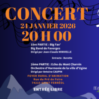 Nous vous attendons nombreux pour notre prochain concert le samedi 24 janvier 2026 à 20H00 à Saint-Ferreol au Foyer Rural d’Animation A l’occasion de ce premier concert de l’année 2026, nous recevons L’harmonie municipale d’Ugine – l’Écho du Montcharvin qui assurera la seconde partie de notre soirée musicale.